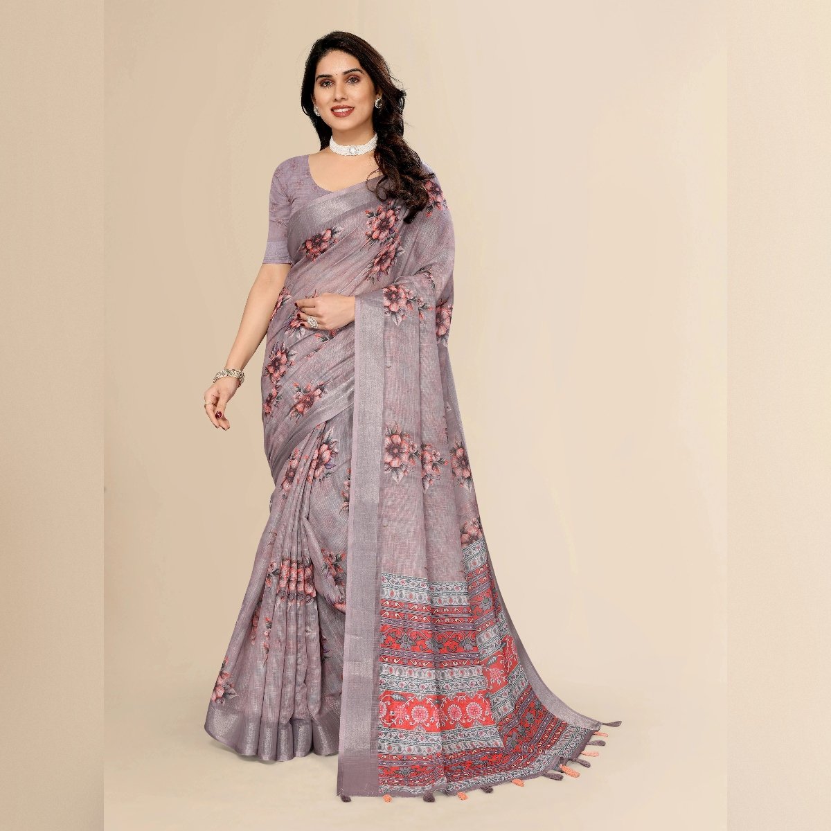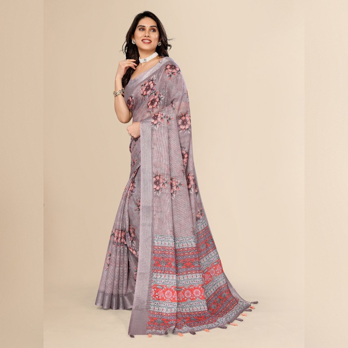 Elegance of traditional Indian attire with our exquisite Ethnic Cotton Linen Printed Saree. This saree beautifully blends the comfort of cotton with the luxurious texture of linen, making it an ideal choice for various occasions, whether it’s a casual day out, a festive celebration, or a cultural event. The fabric’s lightweight and breathable nature ensures all-day comfort, especially in warm climates, while its slightly textured weave adds a sophisticated touch to your ensemble.