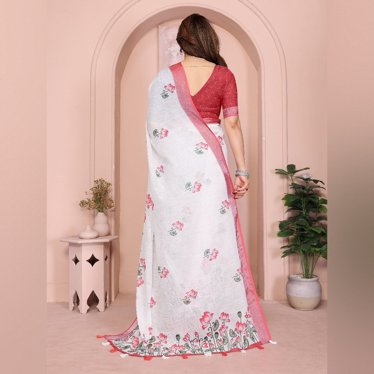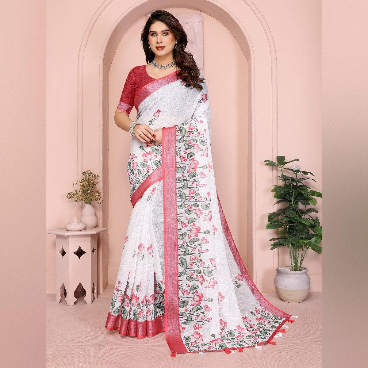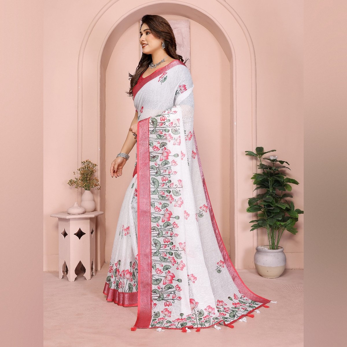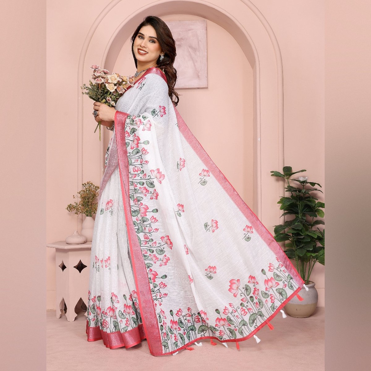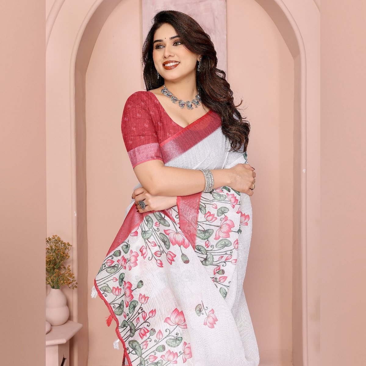 Elegance of traditional Indian attire with our exquisite Ethnic Cotton Linen Printed Saree. This saree beautifully blends the comfort of cotton with the luxurious texture of linen, making it an ideal choice for various occasions, whether it’s a casual day out, a festive celebration, or a cultural event. The fabric’s lightweight and breathable nature ensures all-day comfort, especially in warm climates, while its slightly textured weave adds a sophisticated touch to your ensemble.