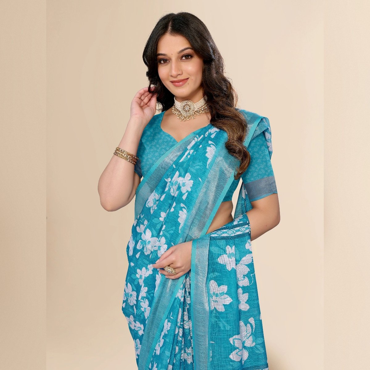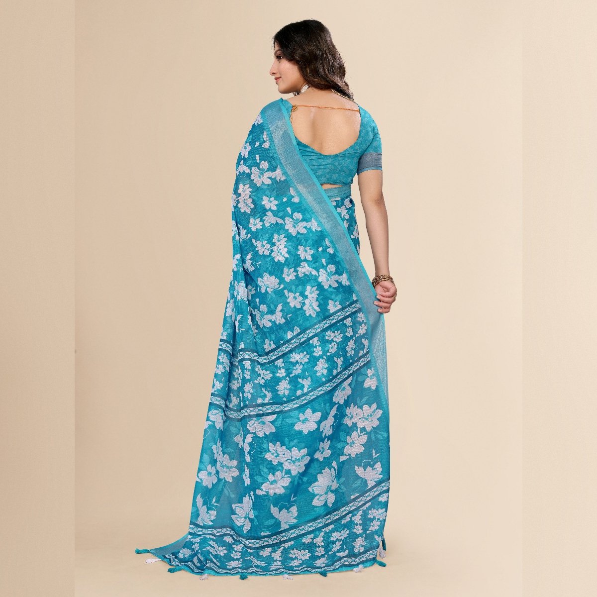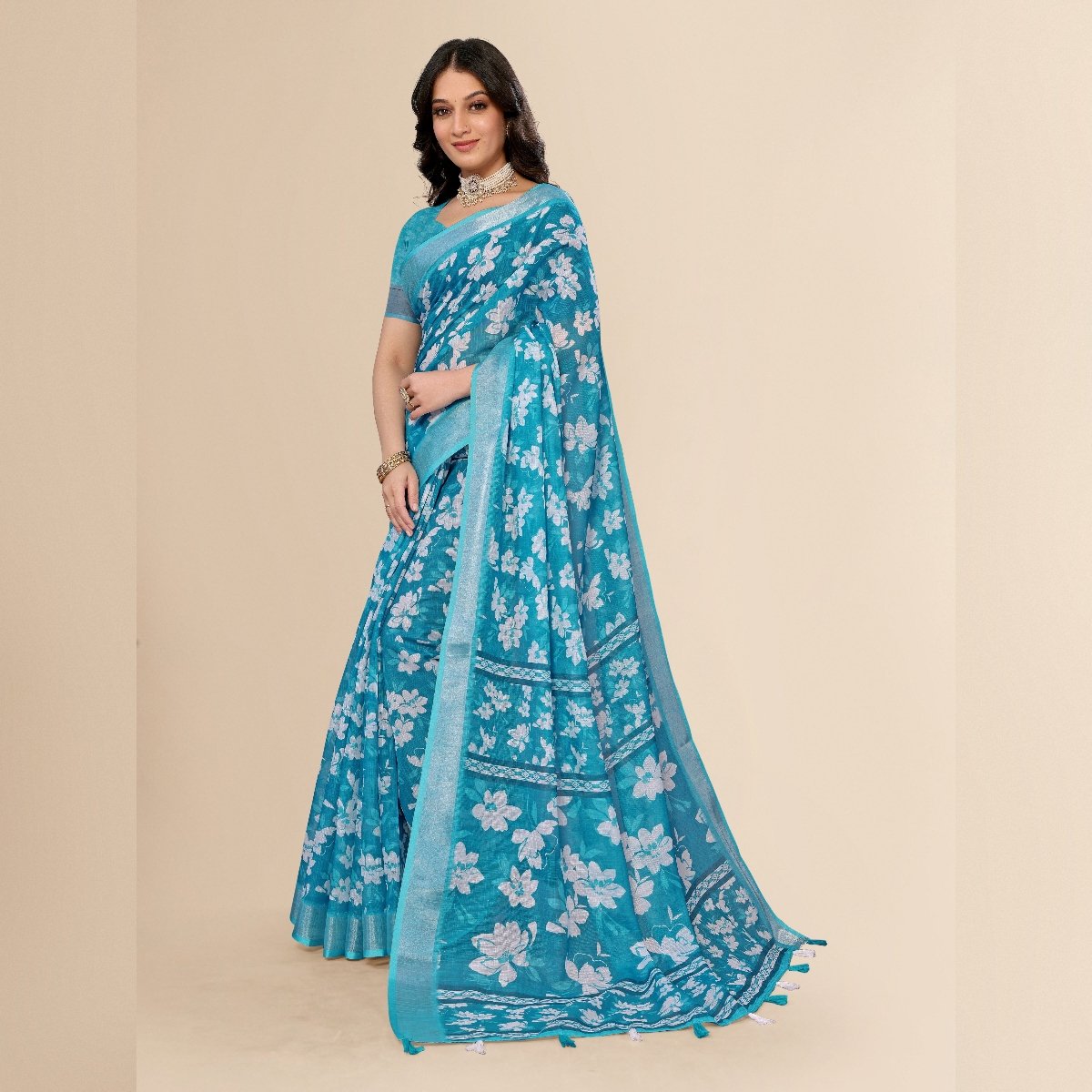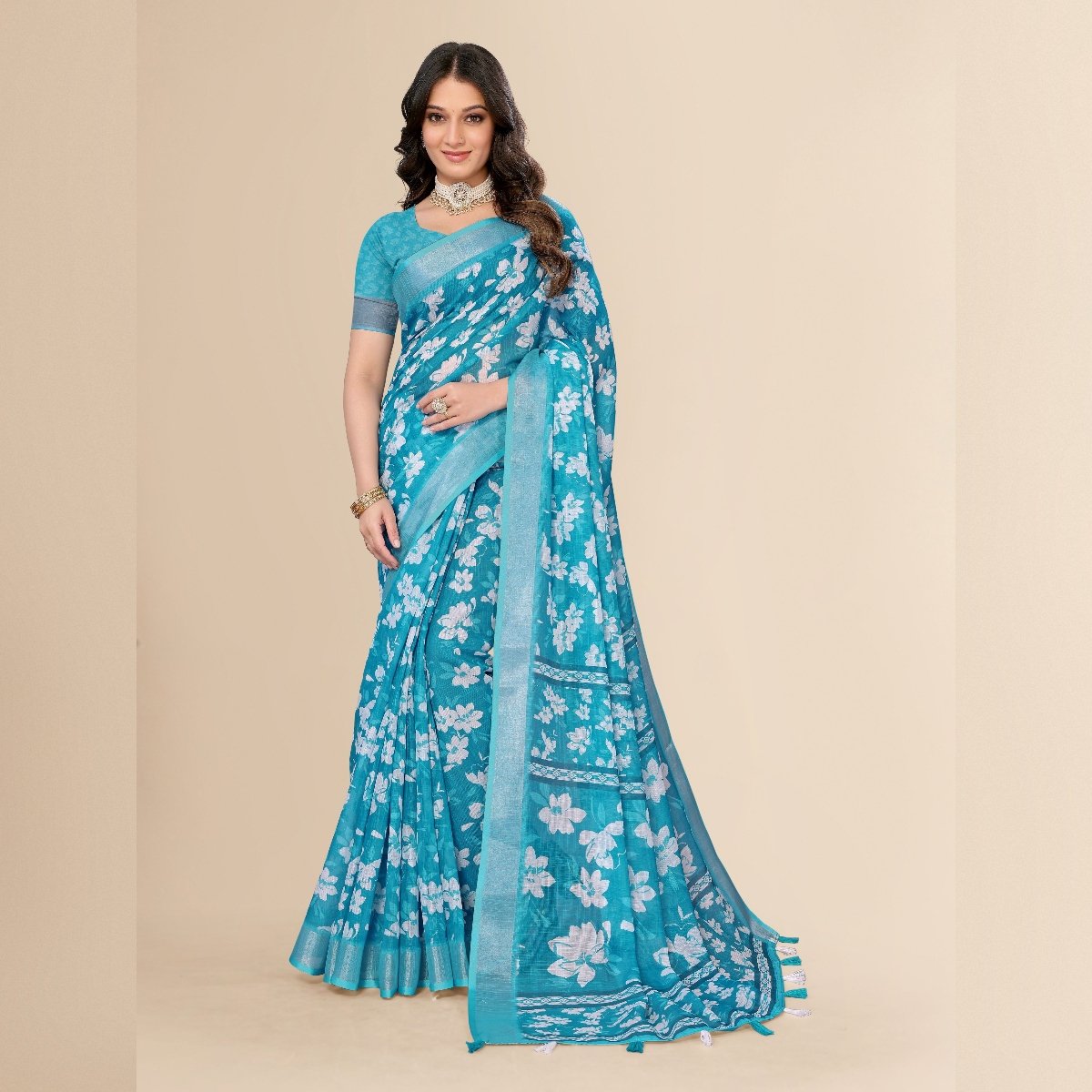 Elegance of traditional Indian attire with our exquisite Ethnic Cotton Linen Printed Saree. This saree beautifully blends the comfort of cotton with the luxurious texture of linen, making it an ideal choice for various occasions, whether it’s a casual day out, a festive celebration, or a cultural event. The fabric’s lightweight and breathable nature ensures all-day comfort, especially in warm climates, while its slightly textured weave adds a sophisticated touch to your ensemble.